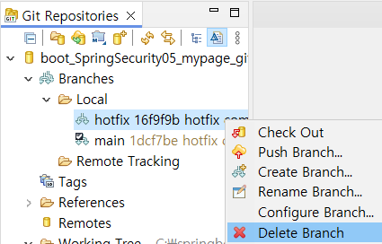 이제 프로젝트를 hotfix 브랜치로 바꾸고 수정
