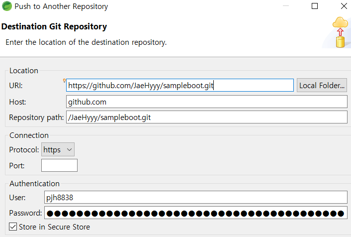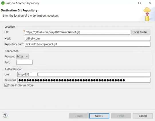 password는 깃허브 비번 아님!! 토큰 생성해야함