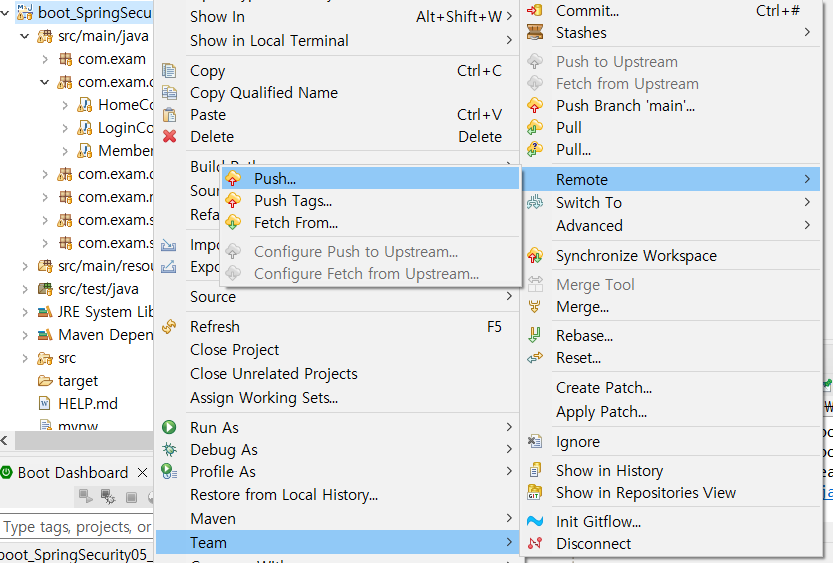 작업하던 프로젝트를 올릴거라 완전히 비어있어야함