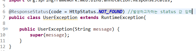 원래 예외 클래스 만들려면 Exception 상속 받고 try catch 해야되는데 귀찮으니까