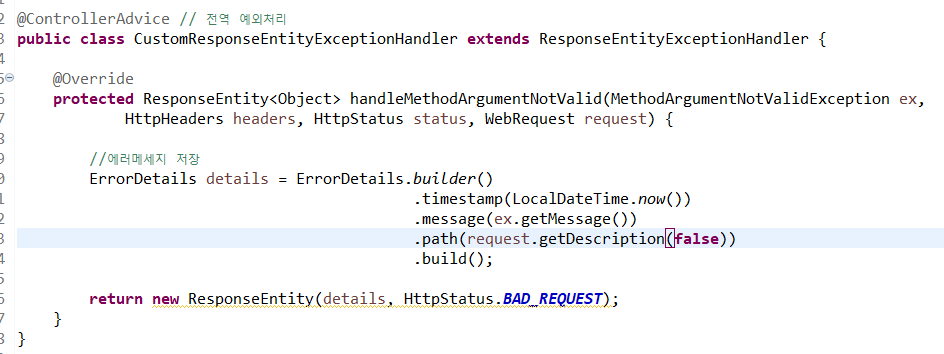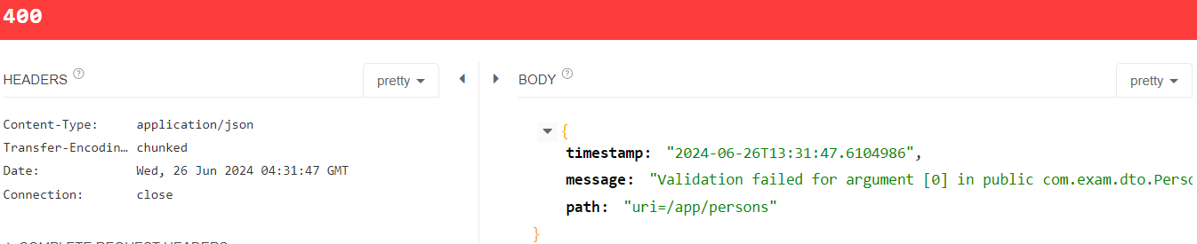 => 여기까지 설정한 후 실습하면 조건에 위배되었을 경우에 400 에러가 뜬다