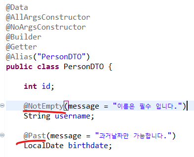 2) DTO에 조건 지정