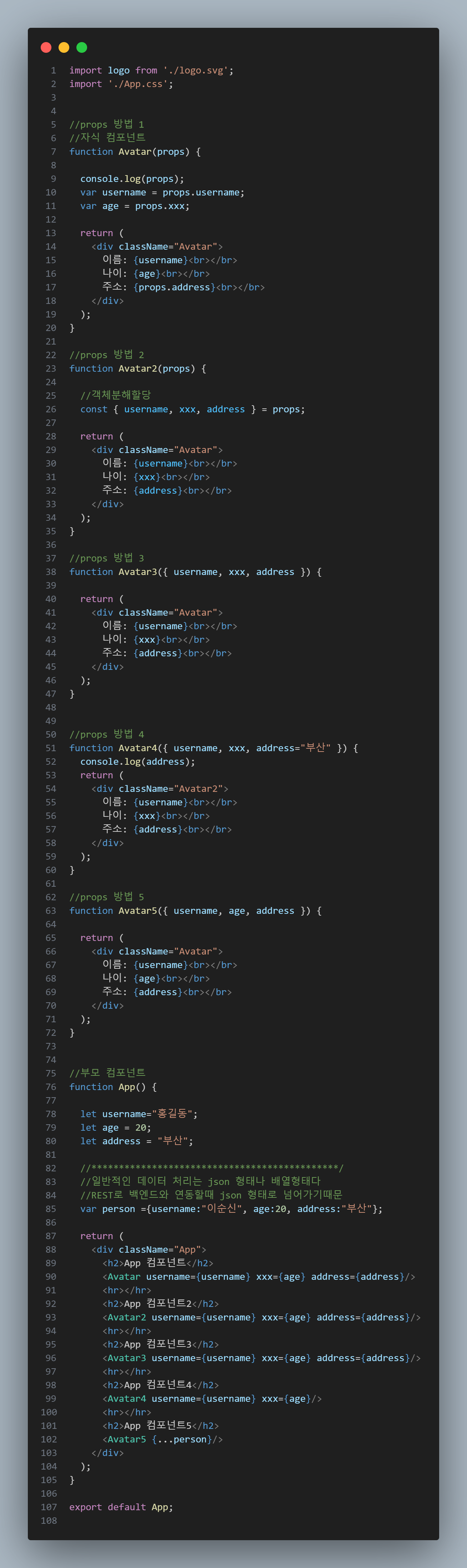 3. 자식 컴포넌트 파라미터로 props로 받으면 끝