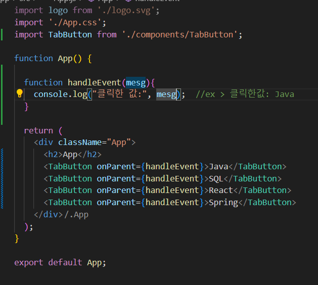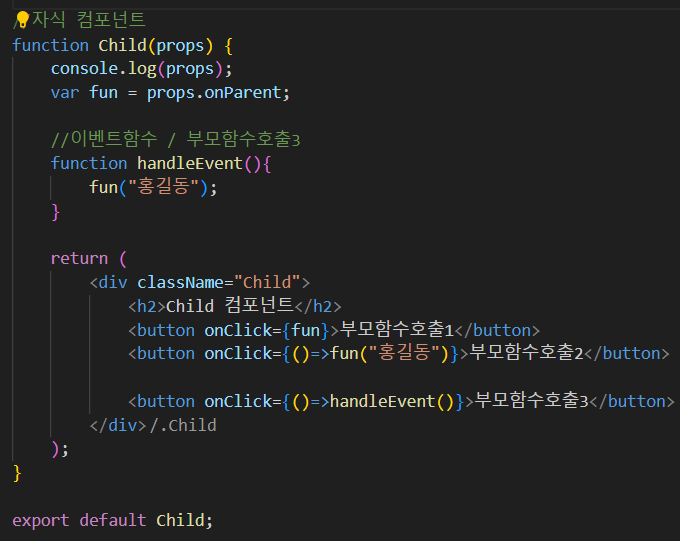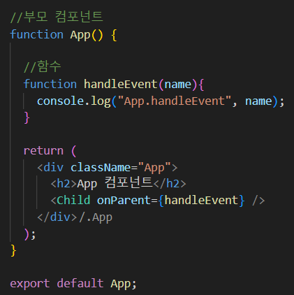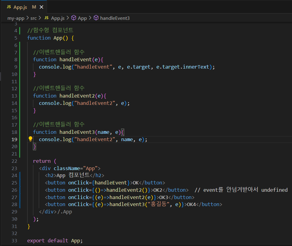 - 이벤트 핸들러 (이벤트함수)는 함수 컴포넌트 안에서 정의함
