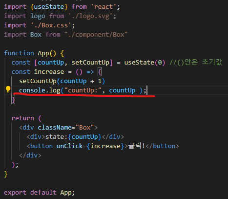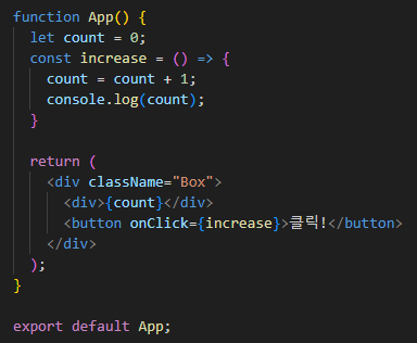 자바스크립트였으면 버튼을 클릭하면 count가 증가했겠지만
