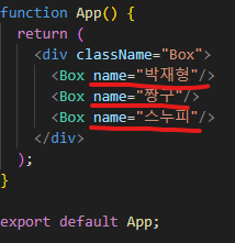 Box.js의 모든 내용이 <Box /> 에 담겨버림
