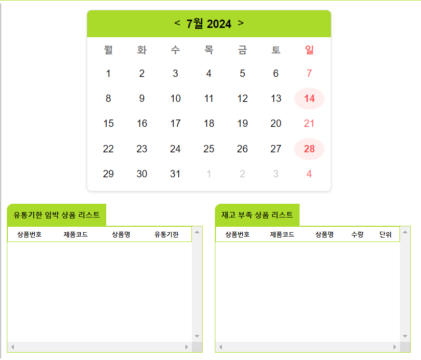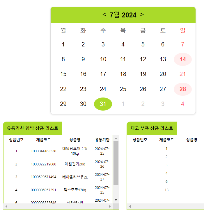 메인페이지 ( 달력 일자 선택 시 해당하는 데이터 조회 )