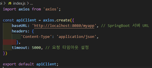 1. src - api 폴더 생성 후 index.js 설정파일 생성