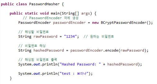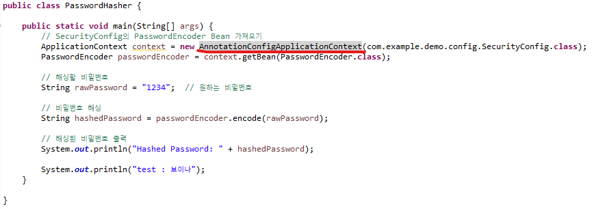 현재 PasswordHasher는 독립 실행형 애플리케이션이므로 웹 컨텍스트가 로드되지 않아서 HttpSecurity 빈이 주입되지 않는다.