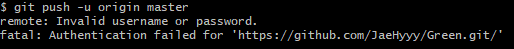 git push를 하니까 username 혹은 password가 유효하지 않다고 나왔다