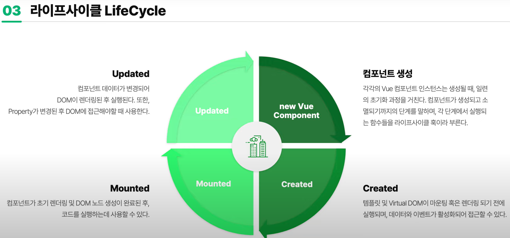 Vue.js 선택한 이유접근성 & 낮은 러닝커브 ( 쉽다 그렇지만 성능이 뛰어나다 )협업에 있어서 약속된 기능들을 사용하기 때문에 코드가 명시적이다. Vue.js 구조SPA - 싱글 페이지 어플리케이션 HTML 파일 body 태그 안에서 보여지는 것들이 유저의 요청에 의해서 바꿔치기 SFC - 싱글 파일 컴포넌트 확장명은 .vue, 하나의 컴포넌트 안에서 HTML, CSS, JS 세가지가 관리됌. Vue.js 개발스타일Options API data, methods, mounted 같은 객체를 사용하여 컴포넌트 로직을 정의하는 개발 스타일 옵션으로 정의된 속성은 컴포넌트 인스턴스를 가리키는 함수 내부의 this에 노출 data 메서드 : 해당 컴포넌트에서 사용될 state, 즉 데이터들을 관리해주는 곳..